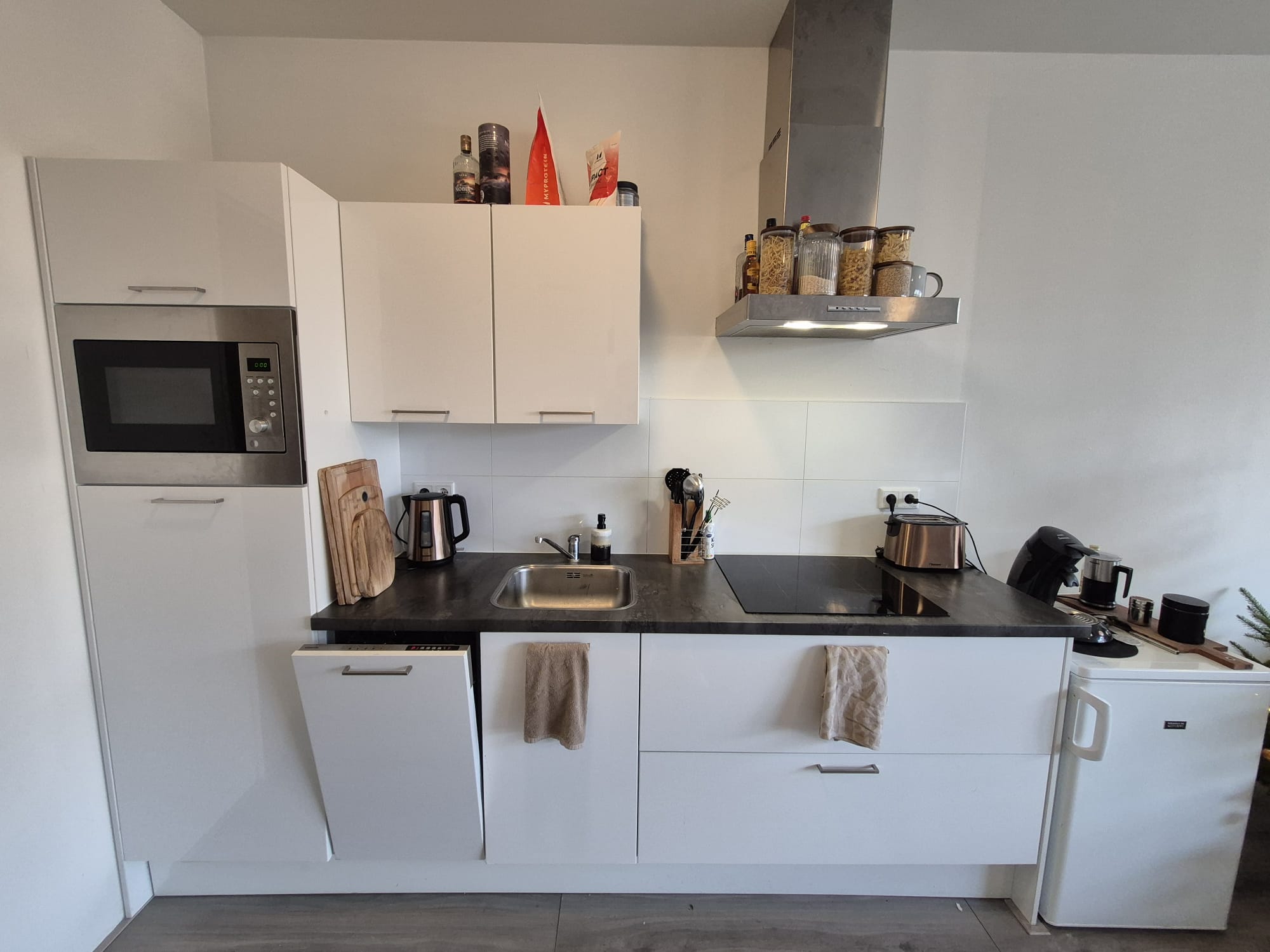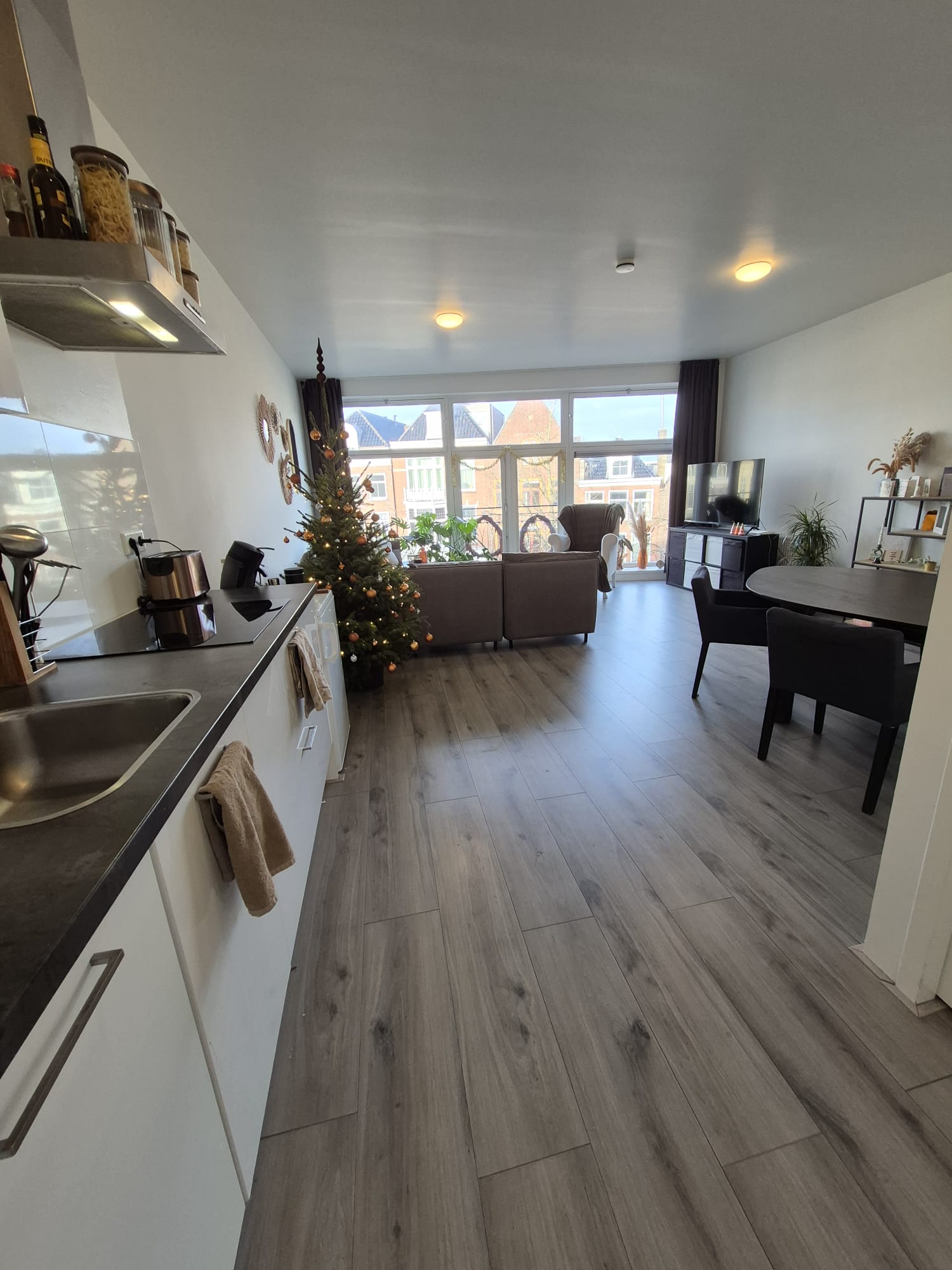 • Ruime open woonkamer met luxe keuken, voorzien van vaatwasser, koelkast, combimagnetron, afzuiging en inductiekookplaat