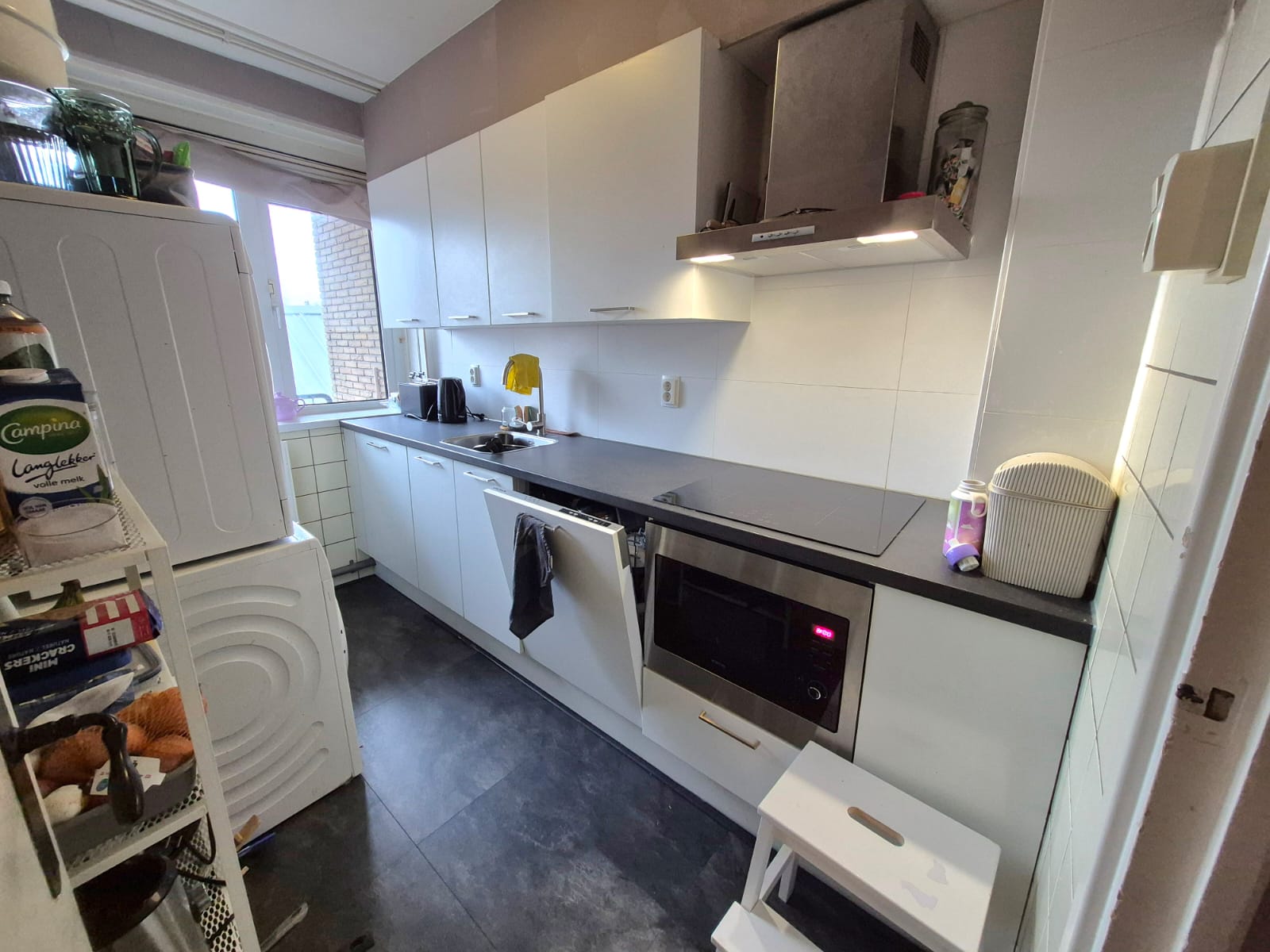 • Moderne keuken met vaatwasser, koel-vriescombinatie, combimagnetron, inductiekookplaat en afzuiging