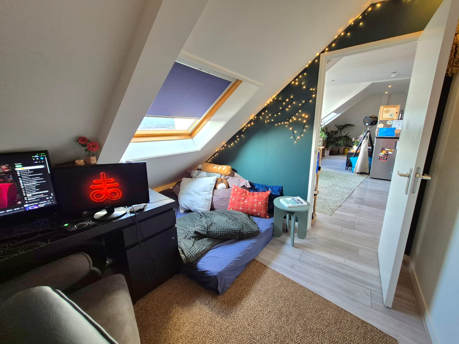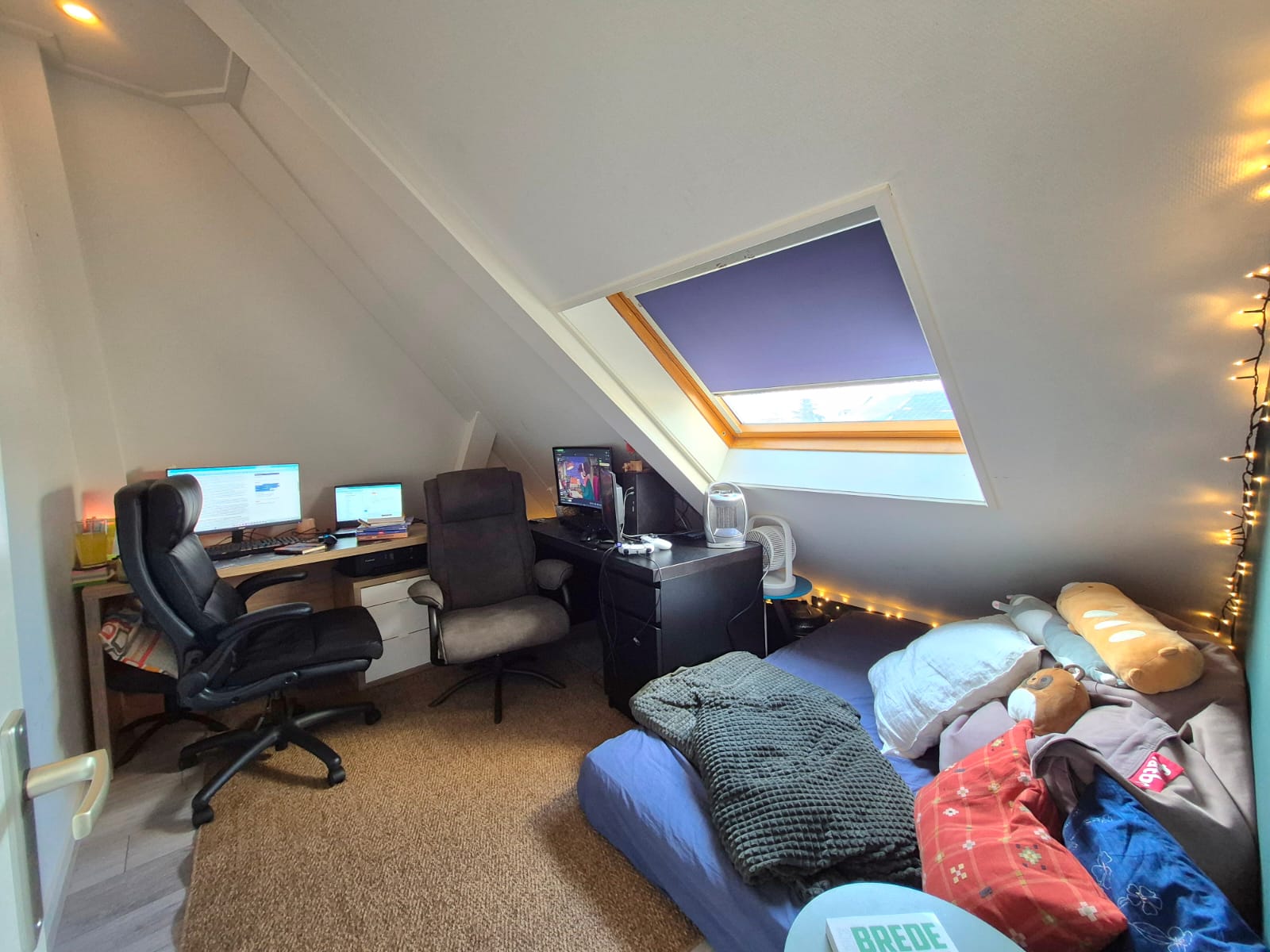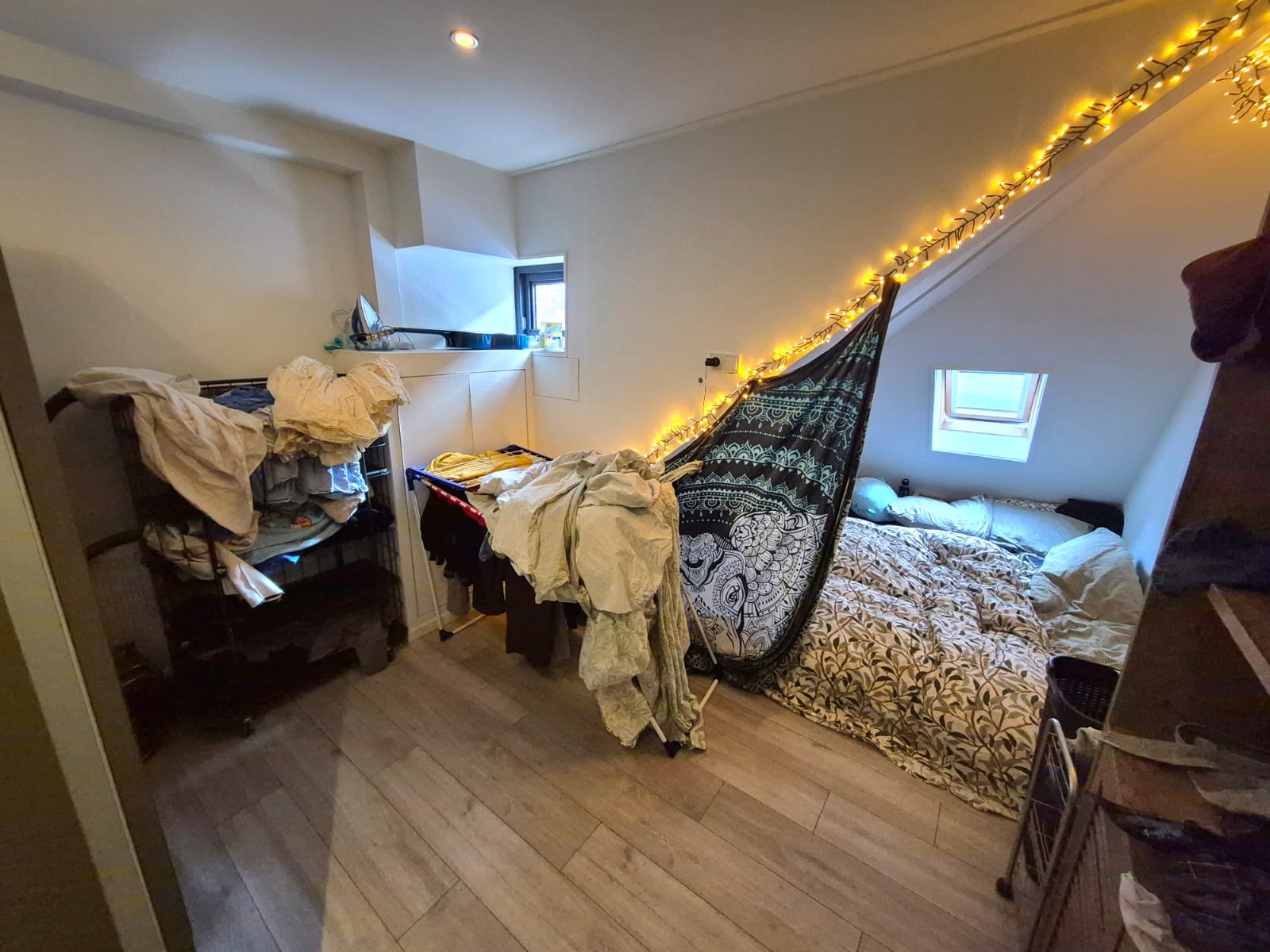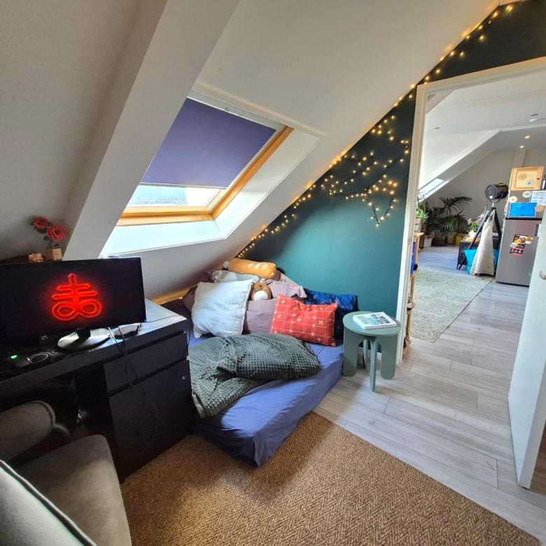 - Gelegen op de zolderverdieping (schuine daken)