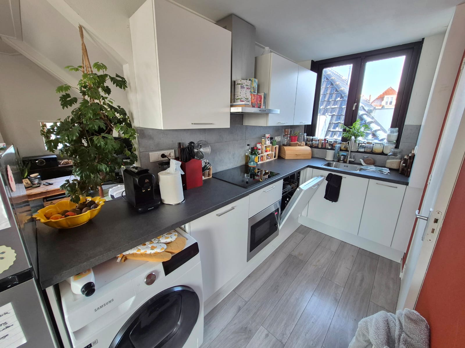 - Nieuwe keuken met vaatwasser, koel-vriescombinatie, inductiekookplaat, afzuiging en aansluiting voor wasmachine